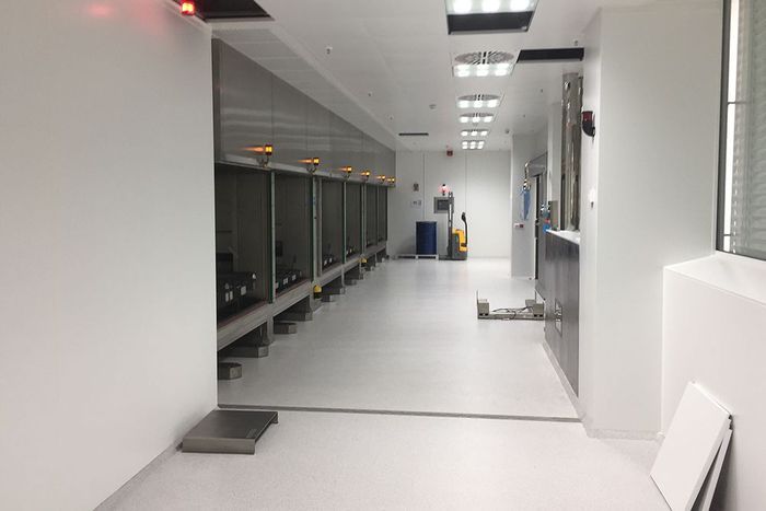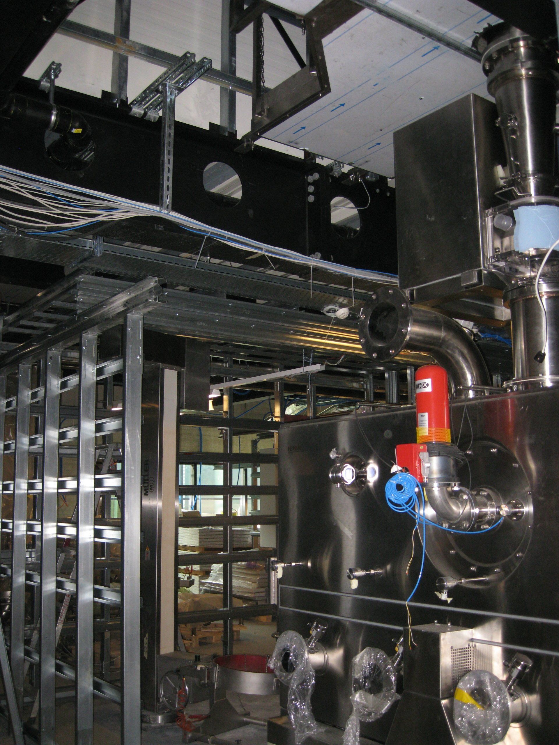 Implementierung von Tanktainer, Faßtransport, Implementierung eines Palettentransportsystems in ein bestehendes Pharmagebäude, Entwicklung einer Durchlauferwärmungsanlage für Fässer.